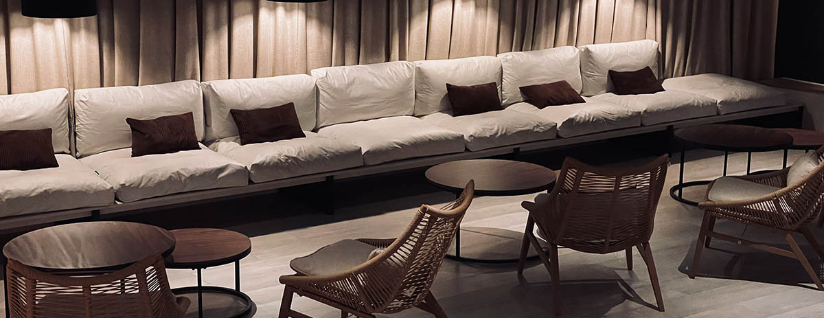 Une banquette XXL de 8 mètres, plusieurs fauteuils, tables d’appoint et manges-debout, permettront à vos invités de choisir la place qui leur convient